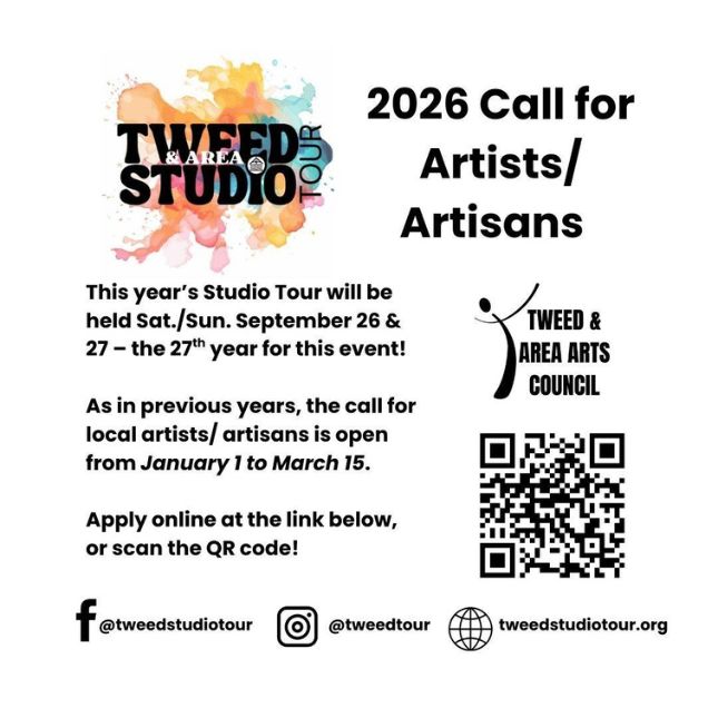 This year's Tweed & Area Studio Tour is Sat./Sun. Sept. 26 & 27. The call for artists/artisans is open until March 15.