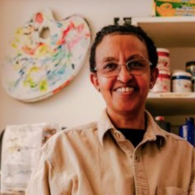 Emebet Belete is an artist and educator who was born in Addis Ababa, Ethiopia. A graduate of the Addis Ababa Fine Arts School, and Queen’s University, Kingston, her work ranges from oil and acrylic, to collage and mixed media, and can be seen at www.artwithpassion.ca. Her work can be found in collections around the world. Emebet is a recipient of Ontario Arts Council grants, which she uses to teach and encourage the arts in schools and the community.